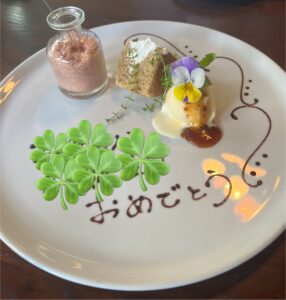 そのあと、予約していたメッセージつきデザートプレートも感動しながらいただきました☕