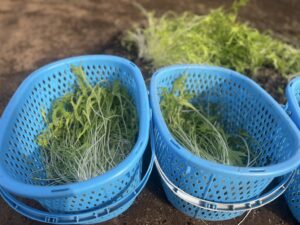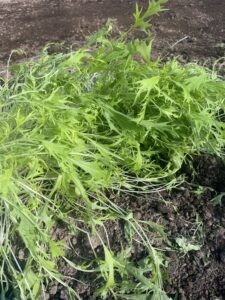 まずは、農業体験に挑戦して、水菜をたくさん収穫しました!!