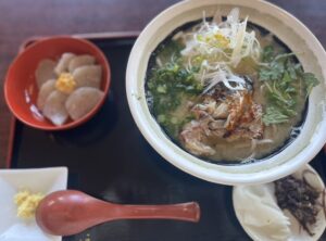 そして広大な自然を眺めながら、喜入の郷土料理という「豊祭そば」と、喜入のこんにゃくをいただきました🍽